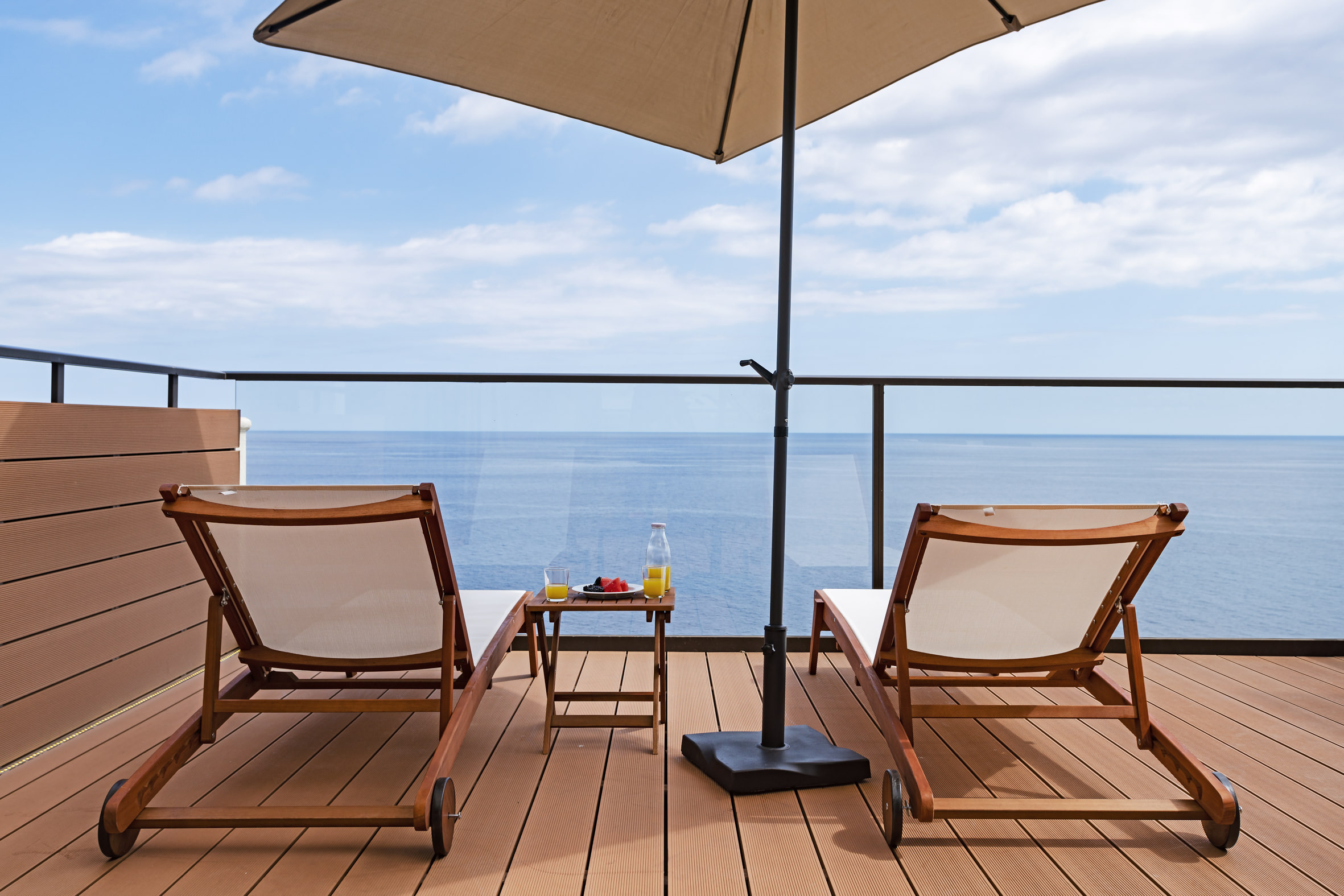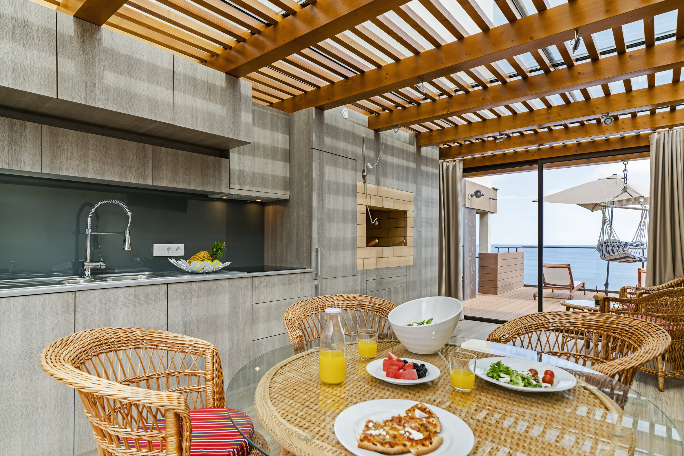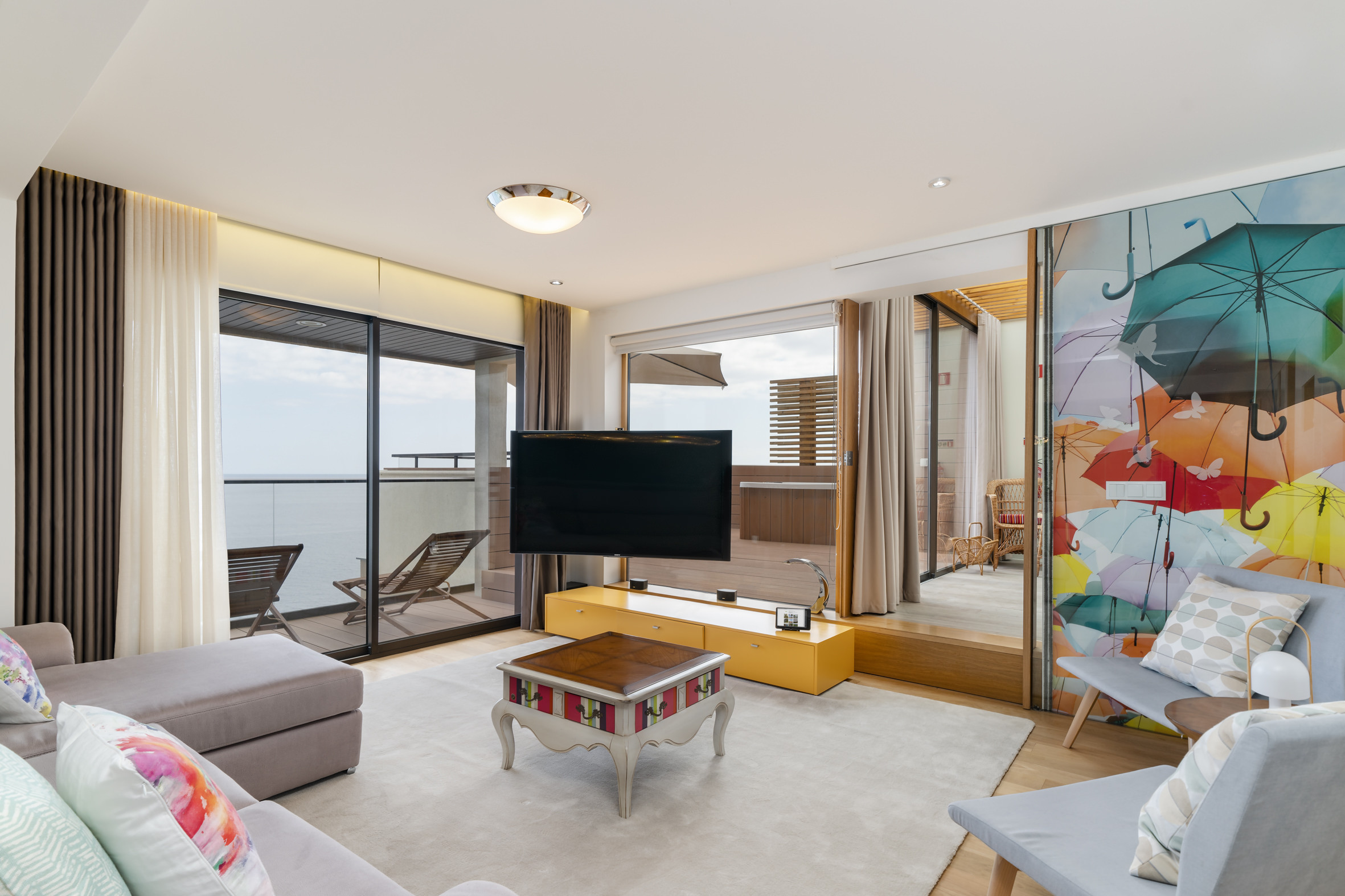 Beyond its interiors, the apartment unfolds into an outdoor haven where the sea becomes part of daily life.