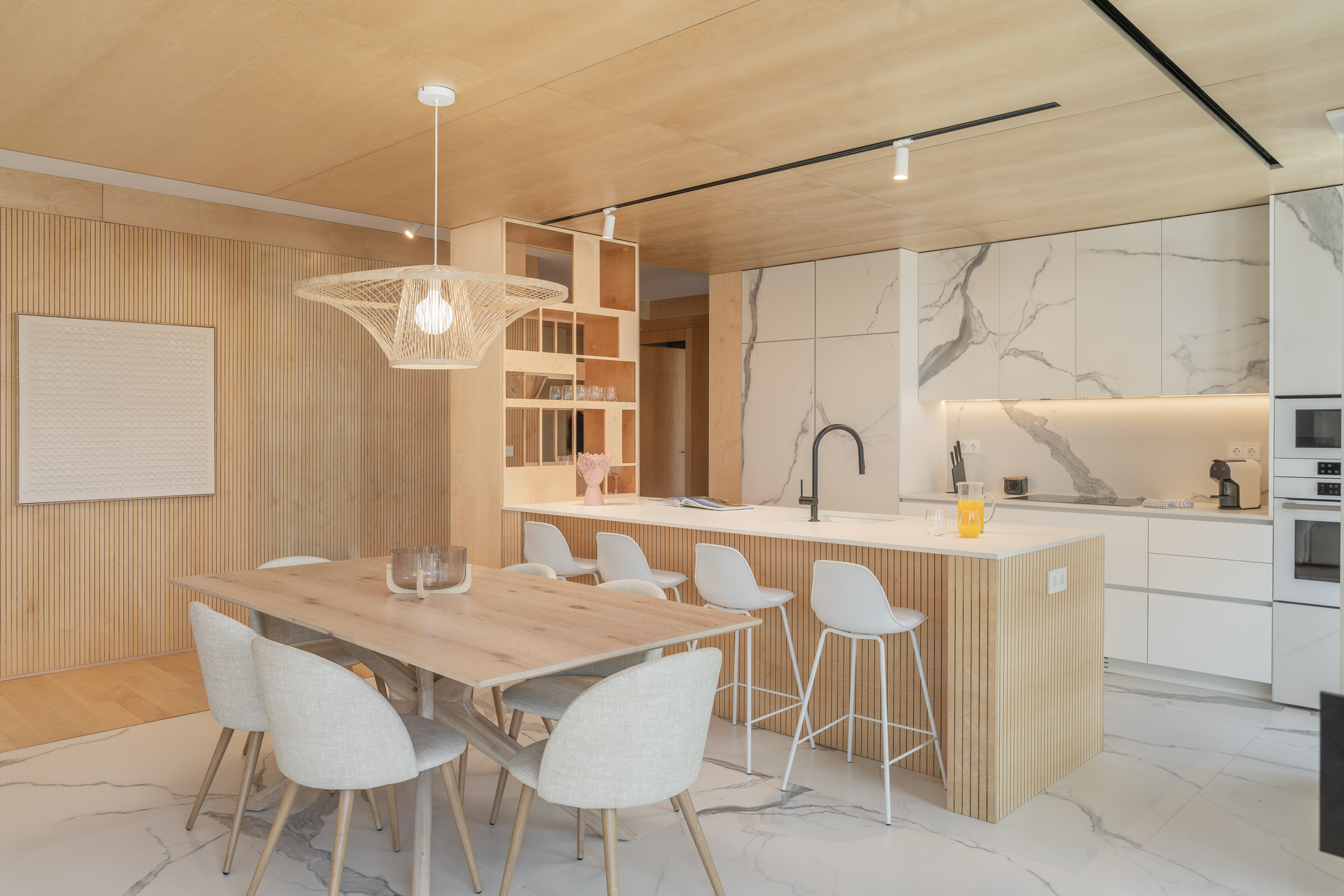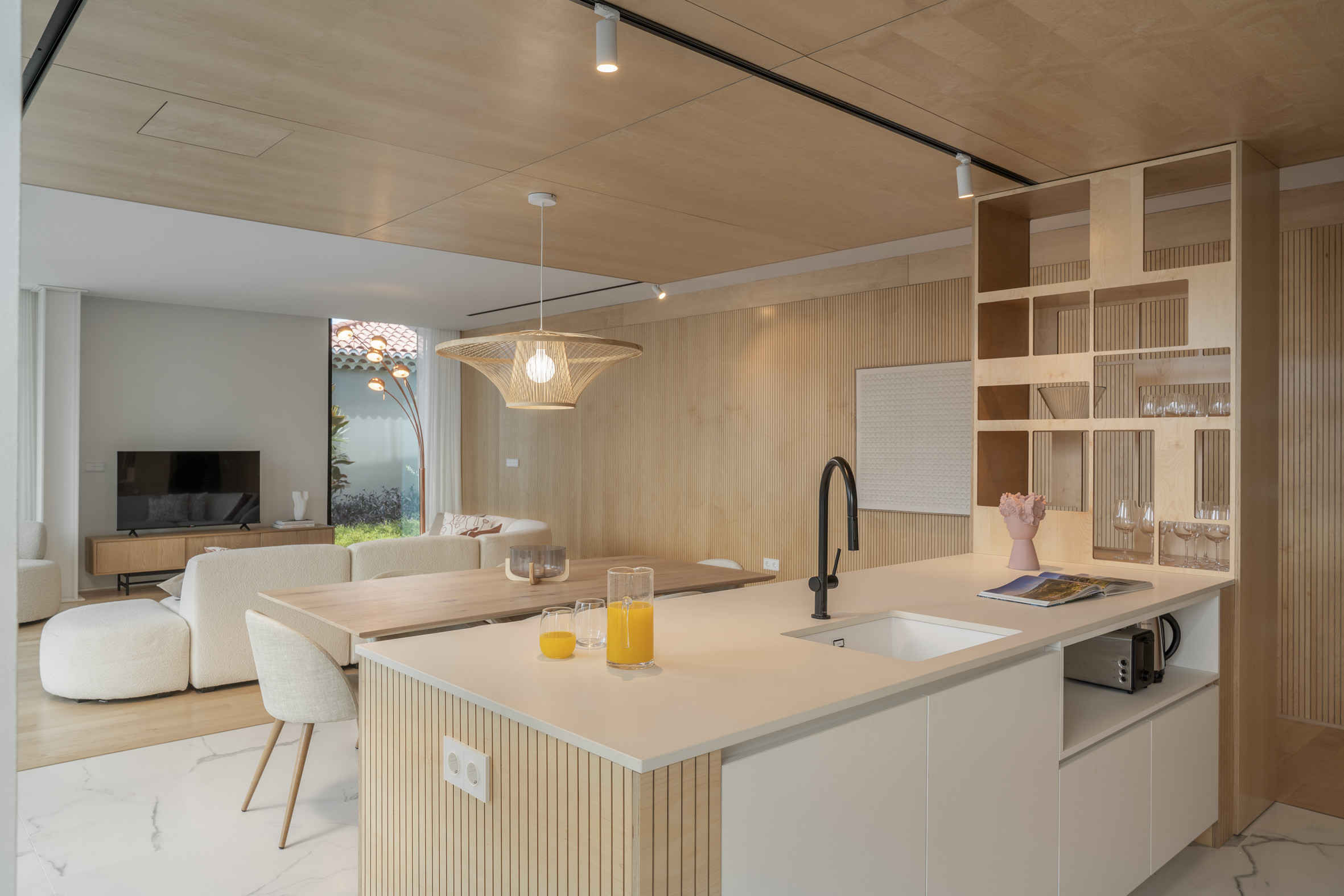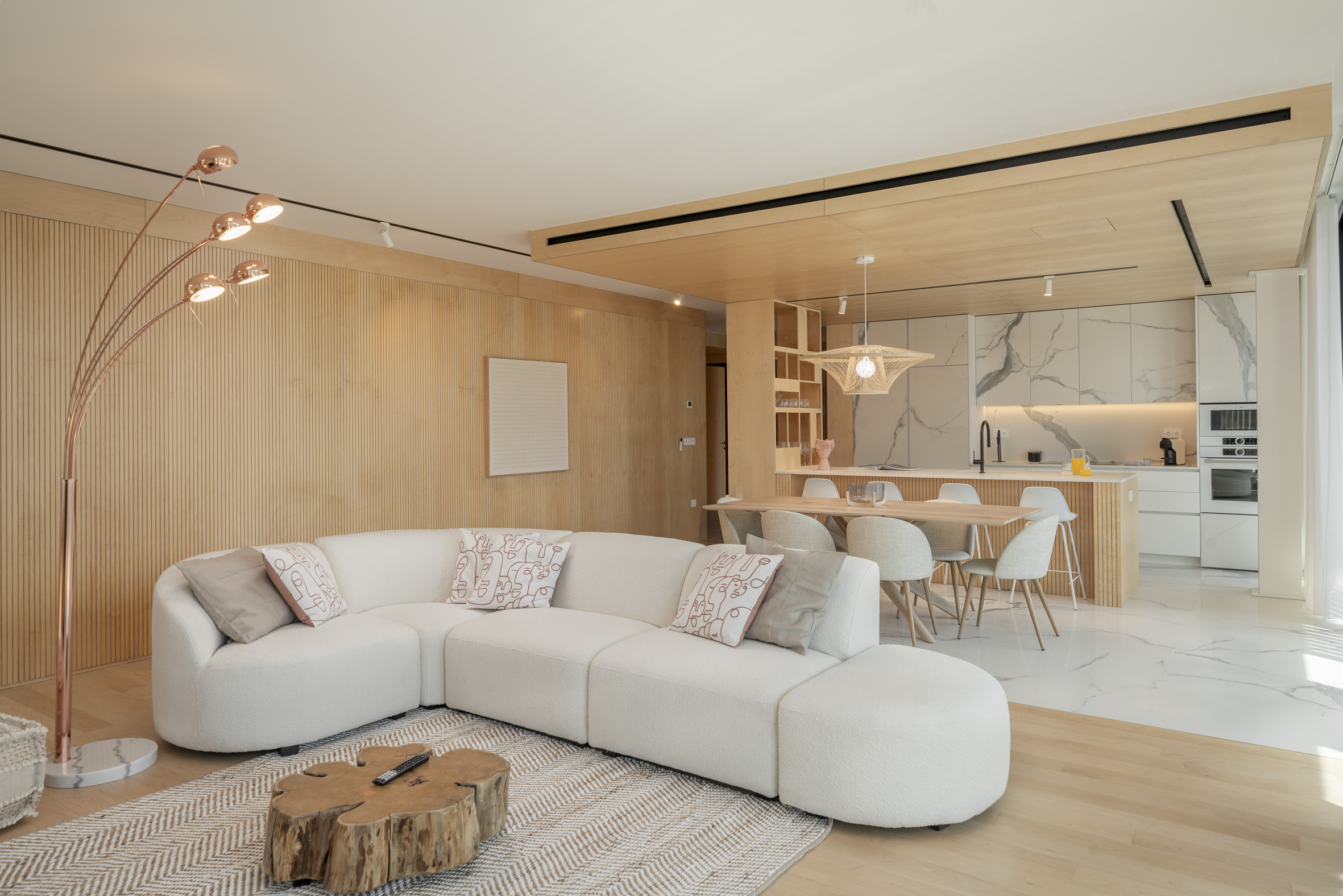 Inside, the apartment is shaped by balance and intention, where natural light, layered textures and fluid spaces create an environment that feels both serene and beautifully composed.