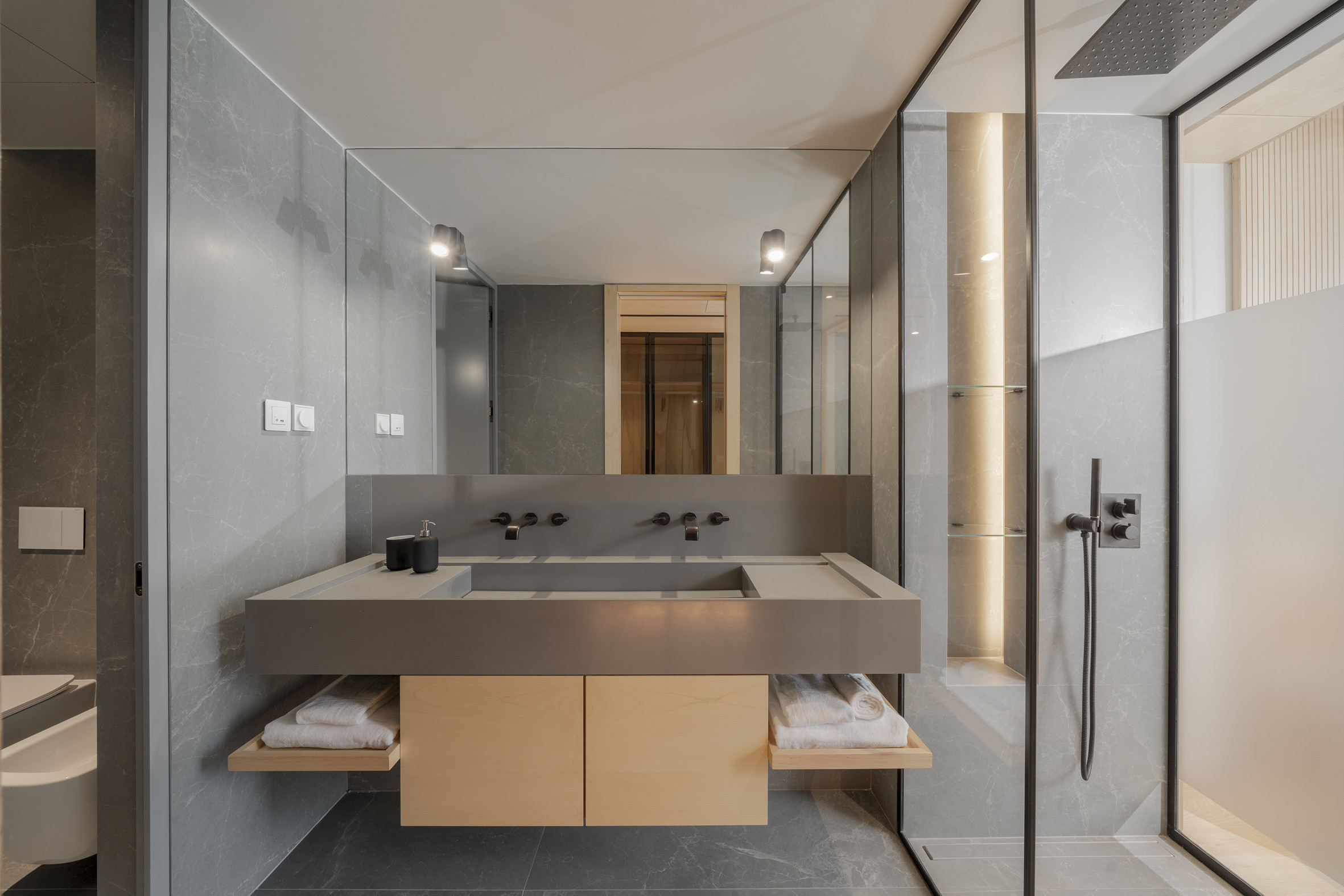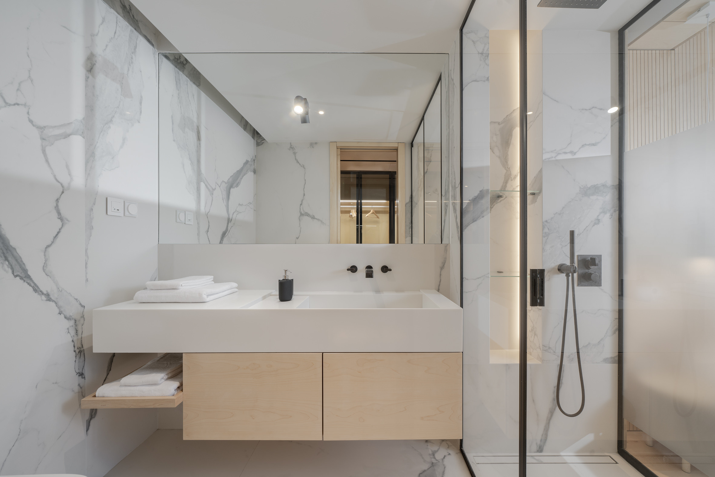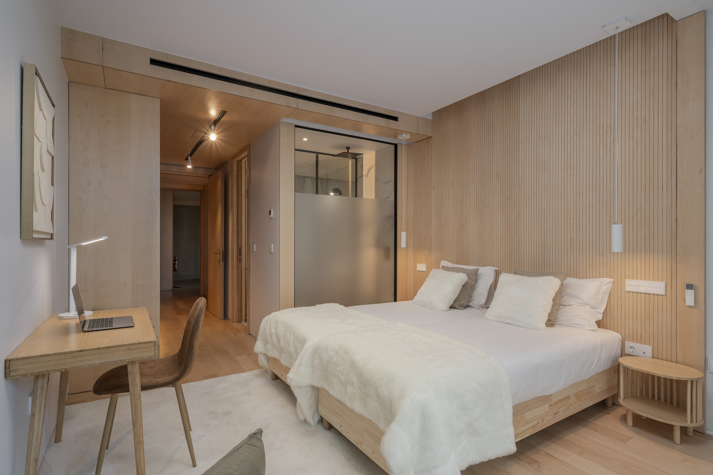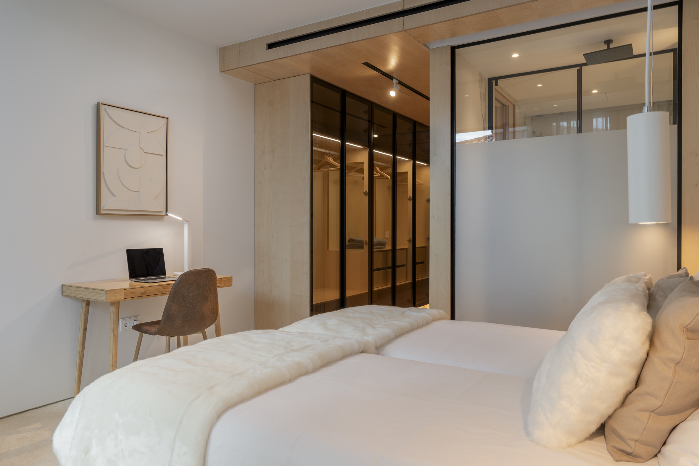 Inside, the apartment is shaped by balance and intention, where natural light, layered textures and fluid spaces create an environment that feels both serene and beautifully composed.