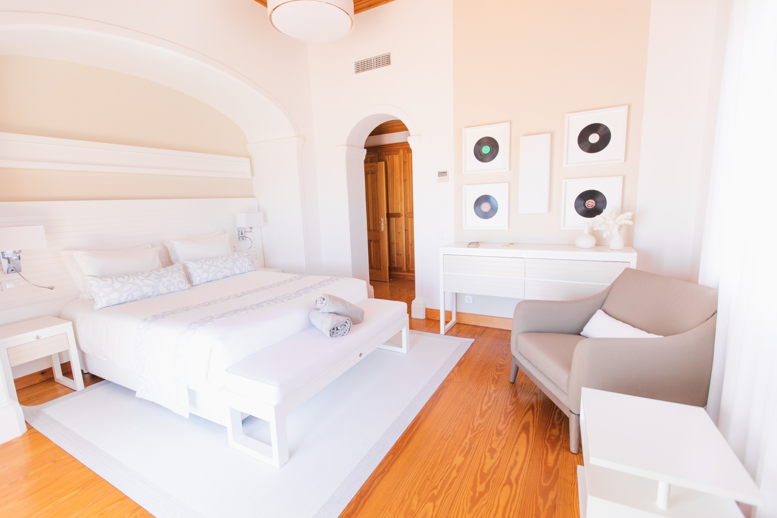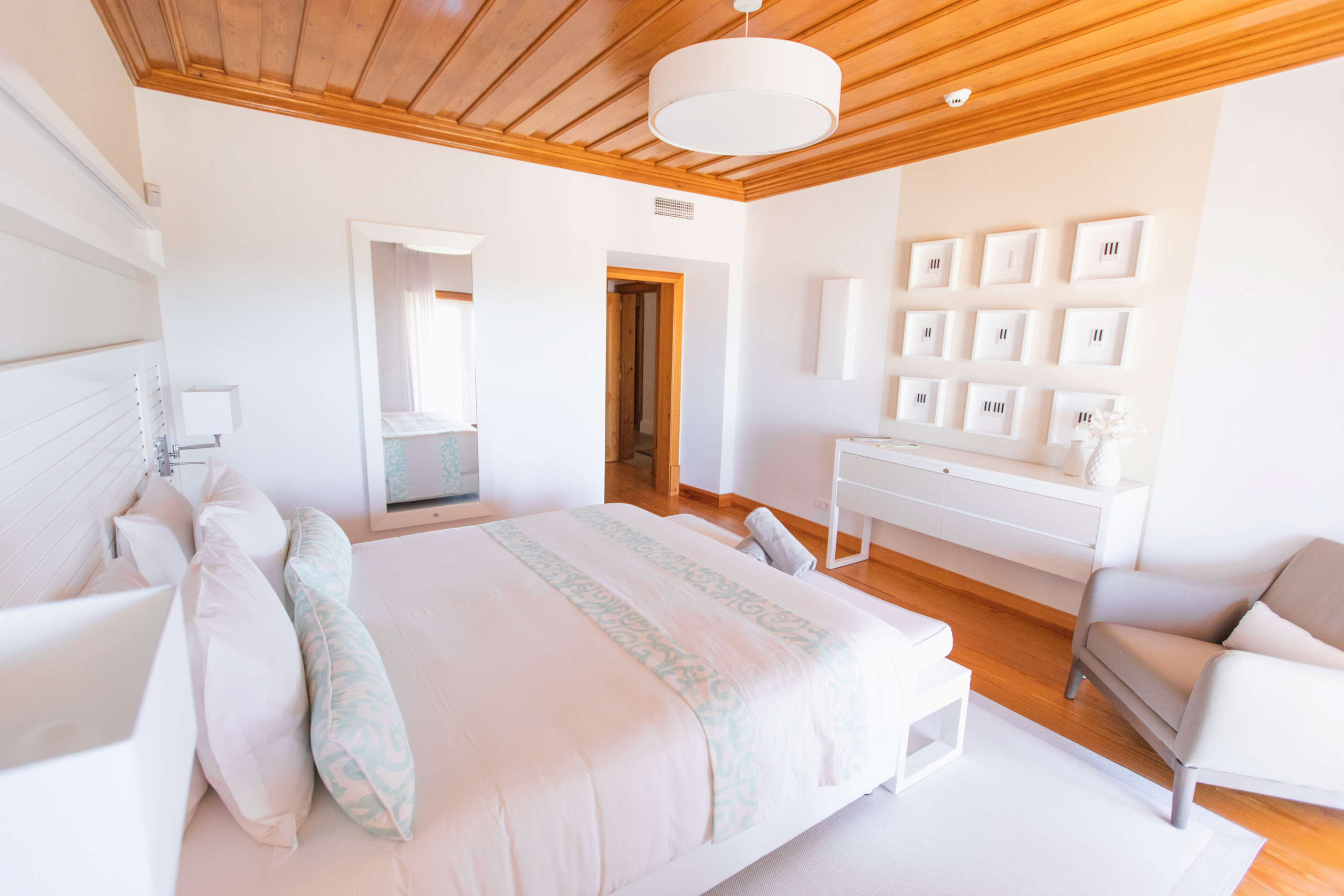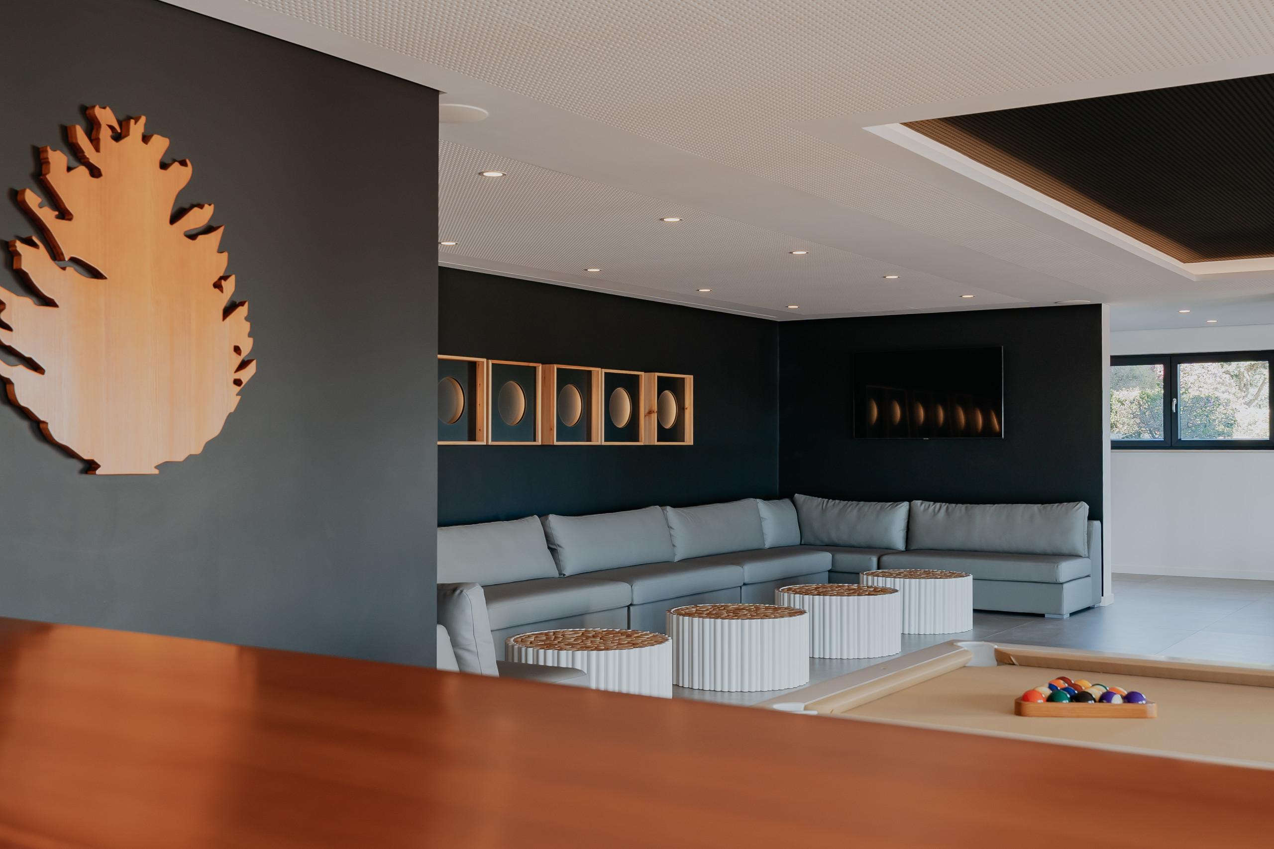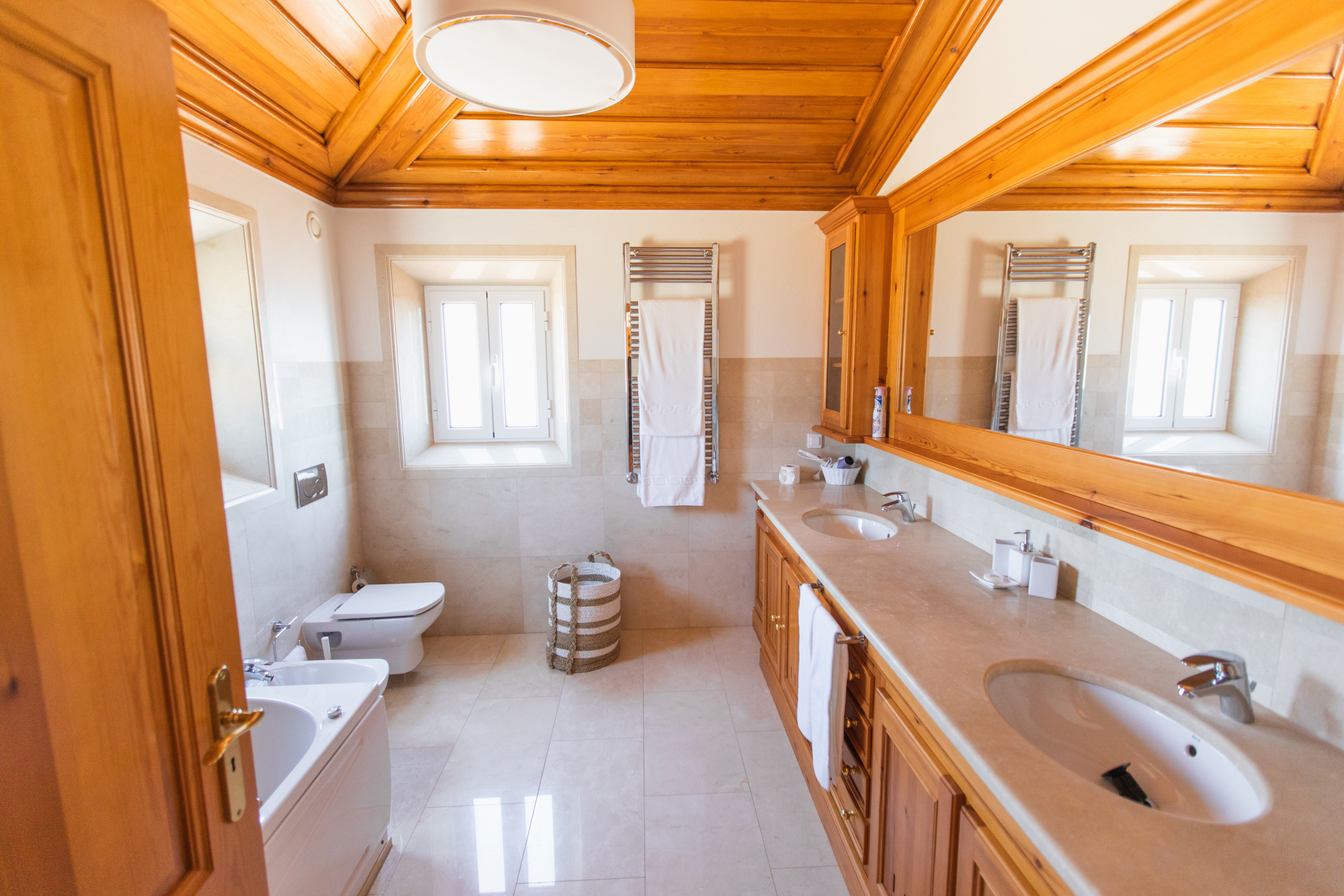 Sunlit living spaces flow effortlessly between lounge, dining and kitchen areas, framed by soft neutral tones, natural textures and handcrafted details that echo the quiet beauty of the Algarve. The open-plan living room features plush seating and curated décor, while the fully equipped kitchen blends traditional wooden cabinetry with modern appliances, ideal for relaxed home cooking or shared meals with loved ones. Seven bedrooms provide generous comfort and flexibility, offering five double rooms and two twin rooms, each styled with crisp linens and calming accents. Ten bathrooms ensure convenience for larger groups, and air conditioning throughout the home guarantees comfort across every season. Leisure is central to the experience, with a flat-screen TV, PlayStation and a dedicated games room complete with a pool table and table football, creating a lively setting for both adults and children to unwind.