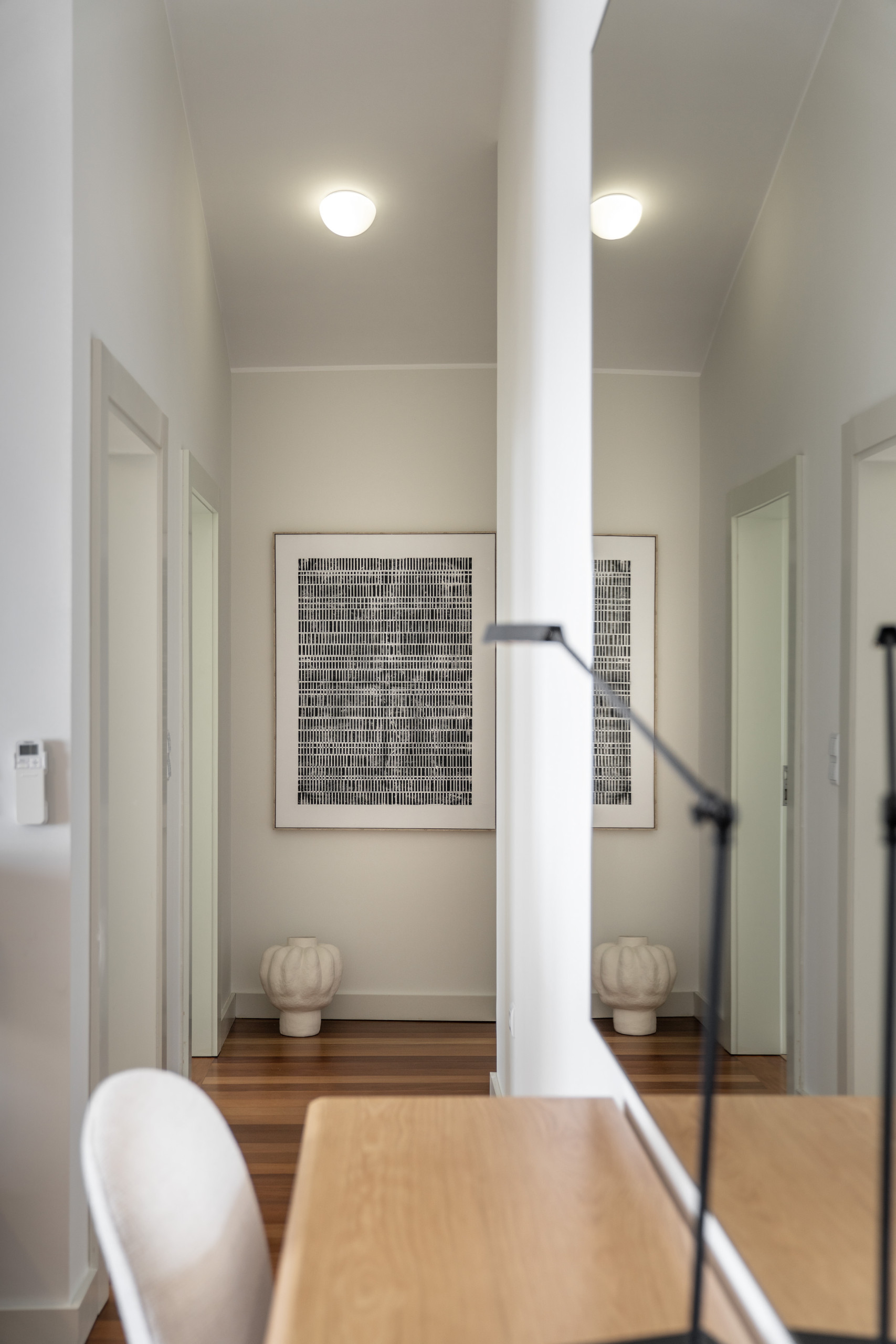 Every detail of the interior reflects an effortless blend of light, space, and calm. The design embraces a soft, natural palette, creating a warm and inviting atmosphere where simplicity becomes sophistication.