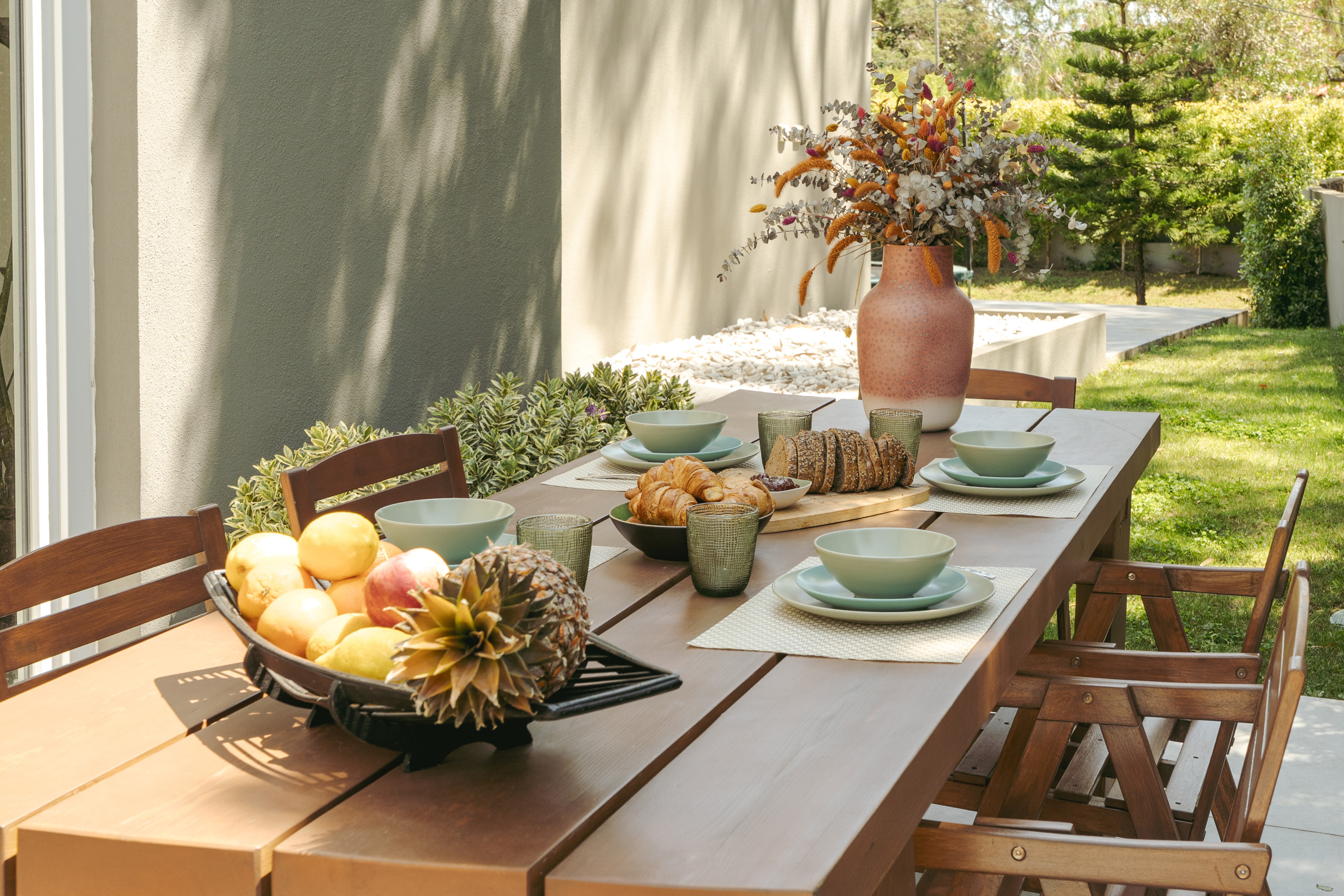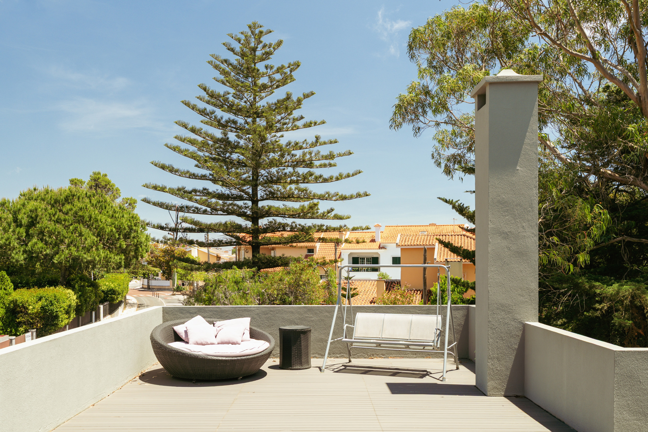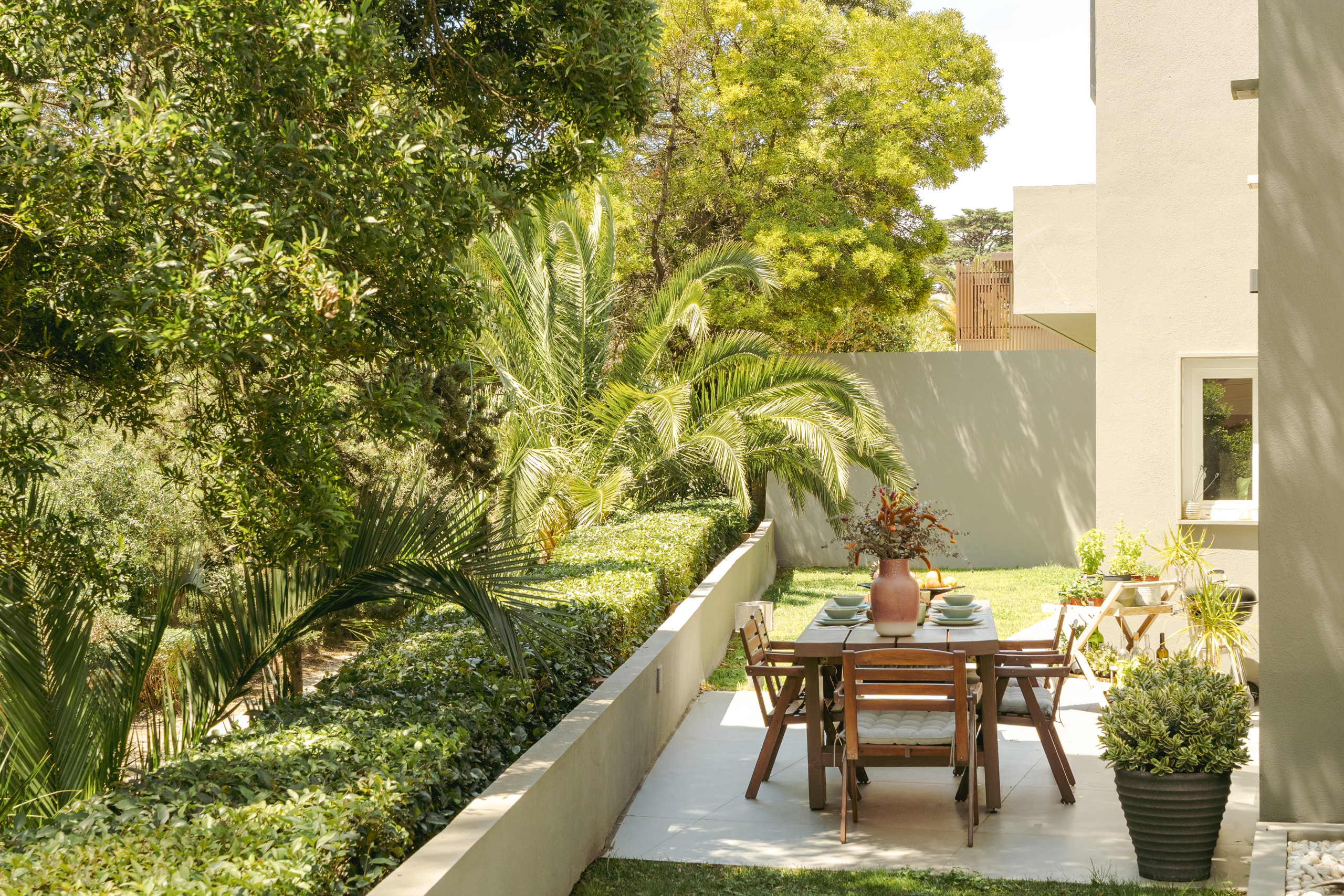 Whether working remotely or hosting loved ones, the home adapts to every moment with grace. For added ease, families can also request a live-in nanny to assist with grocery shopping, kitchen management, bed preparation, and general household help (upon request).Every detail has been carefully considered to offer a sense of calm, warmth, and timeless style. Set within a private, leafy garden, the villa’s exterior invites slow mornings and barefoot afternoons. A shaded dining table for eight, lounge seating for six, and a large trampoline offer space for both play and pause. The setting is bright, peaceful, and perfect for long summer days or quiet year-round living.