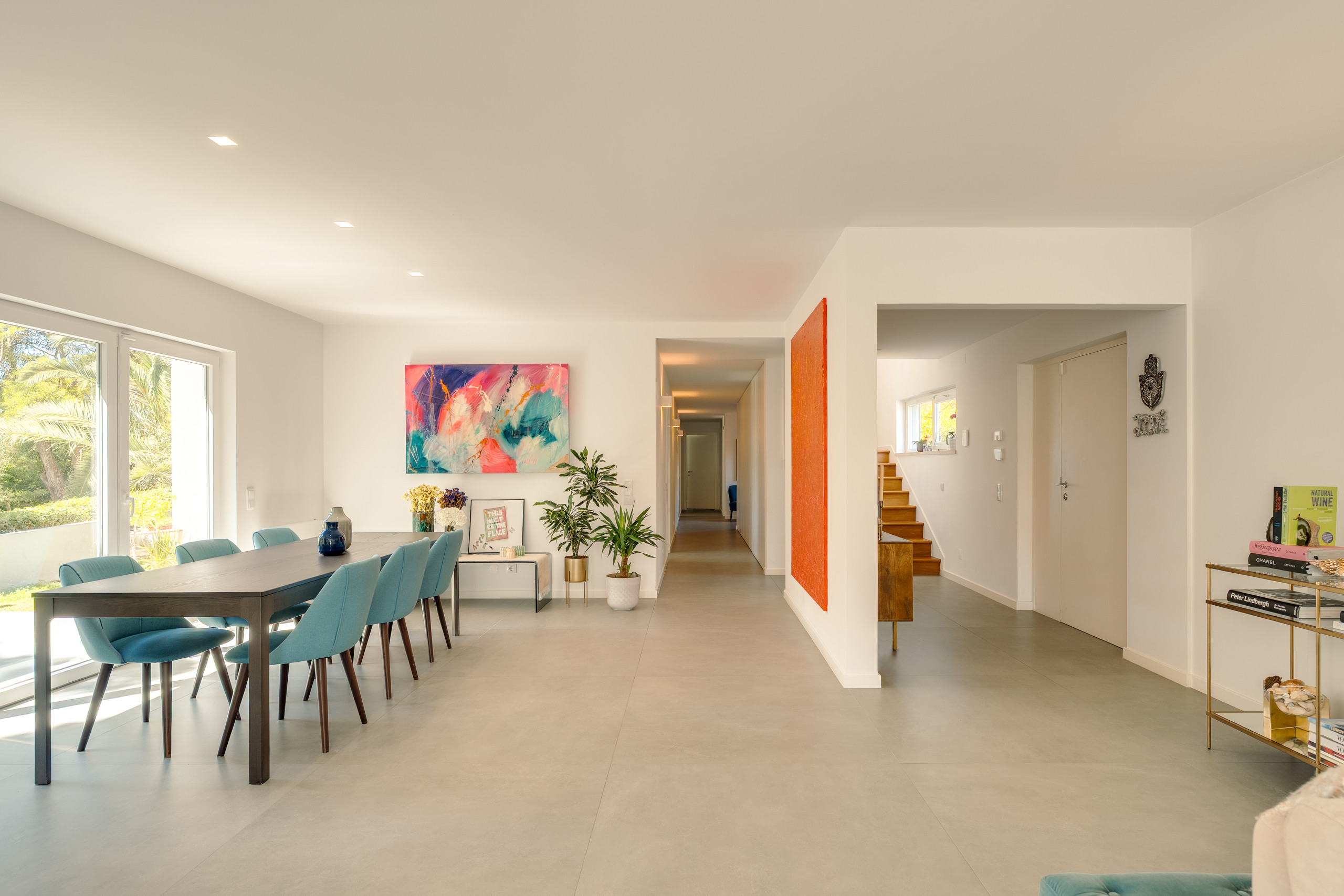 Backing directly onto the lush fairways of Onyria Golf Course and just moments from the Atlantic coastal path, the villa is ideally positioned for scenic walks or bike rides toward Guincho Beach, a favourite among surfers and sunset lovers. Within walking distance, guests will find charming cafés, bakeries, and local grocery spots, making everyday living and home-cooked meals both easy and enjoyable during longer stays.