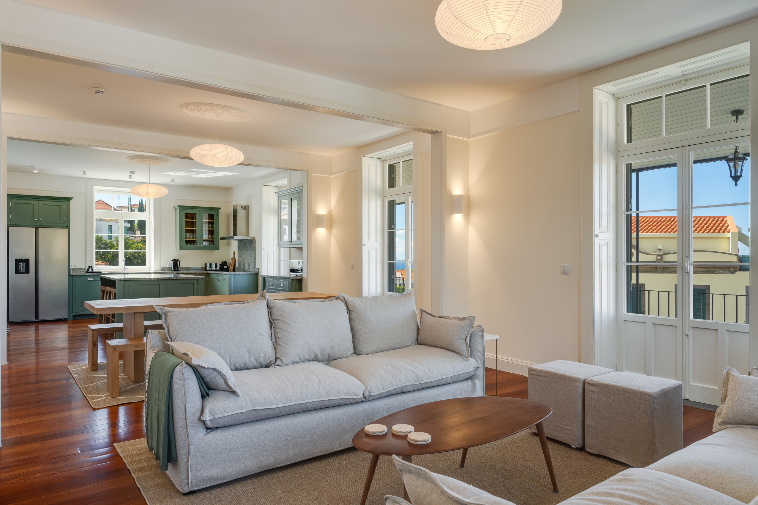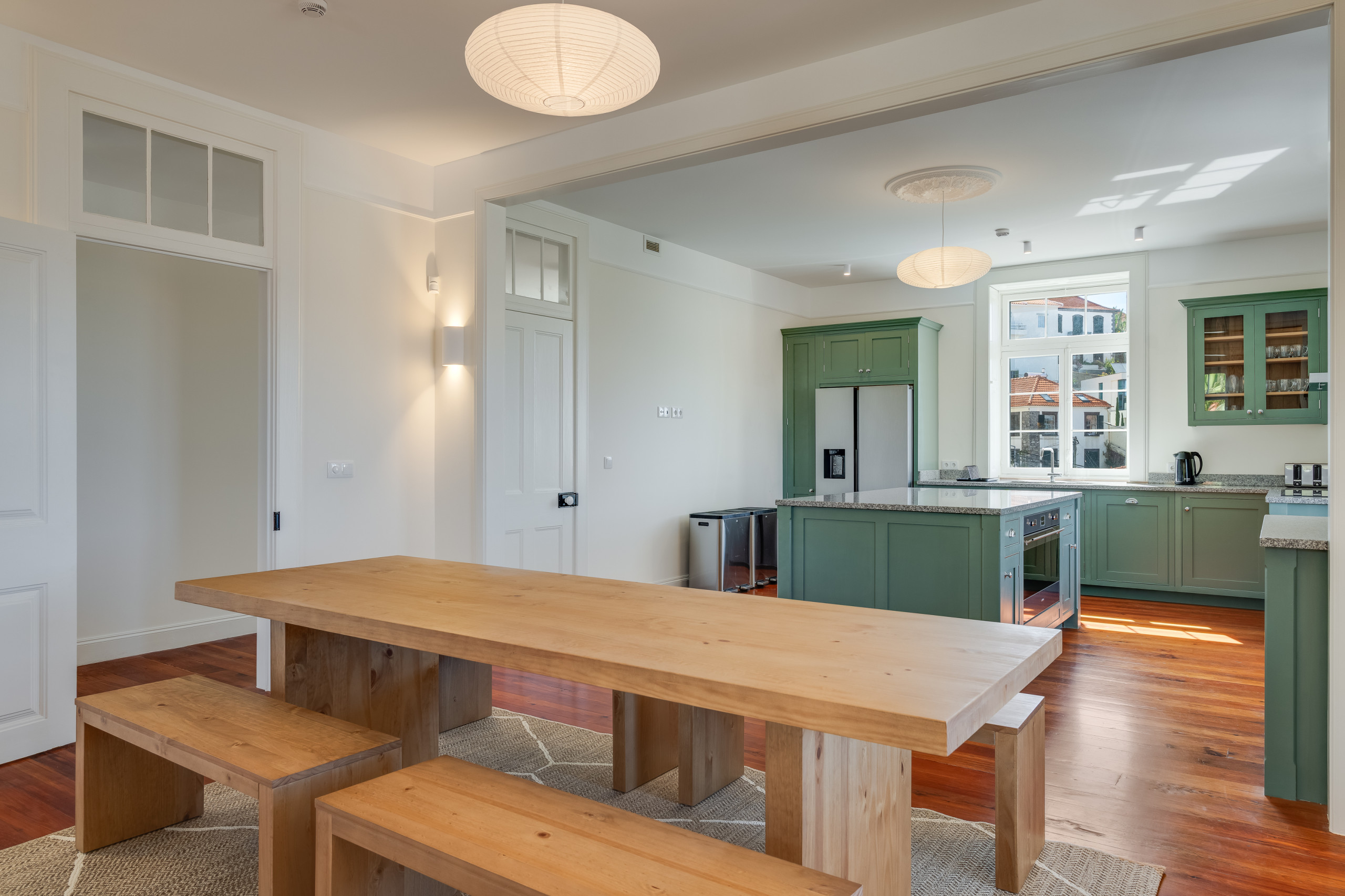 Inside, the home unfolds with a sense of quiet grandeur, where light, volume and refined design elements come together across beautifully restored historic architecture.