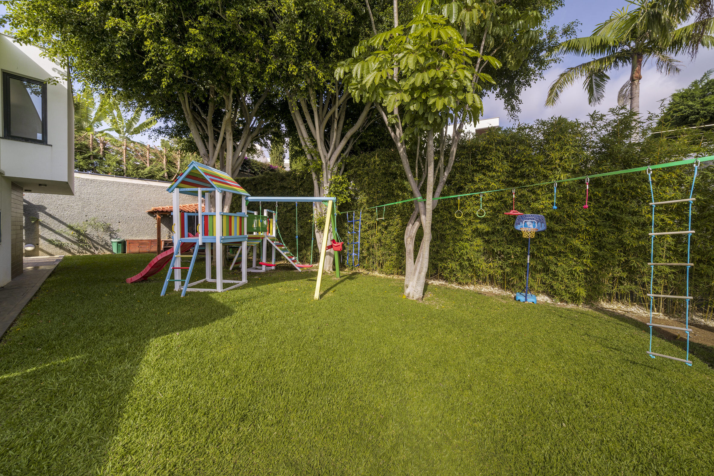 The exterior of this villa is a true highlight, offering a variety of spaces that cater to every mood and moment of the day. The heated swimming pool invites you to unwind in the sun, while the solarium and shaded lounge areas provide a soothing environment to relax or socialise. Families will appreciate the colourful playground surrounded by mature trees, featuring a playhouse, swings, slide, and climbing frame, creating the perfect outdoor adventure for children. The covered barbecue area adds charm and functionality, ideal for sharing meals al fresco. Thoughtful and scaping with palm trees and greenery surrounds the property, enhancing its sense of privacy and peace.