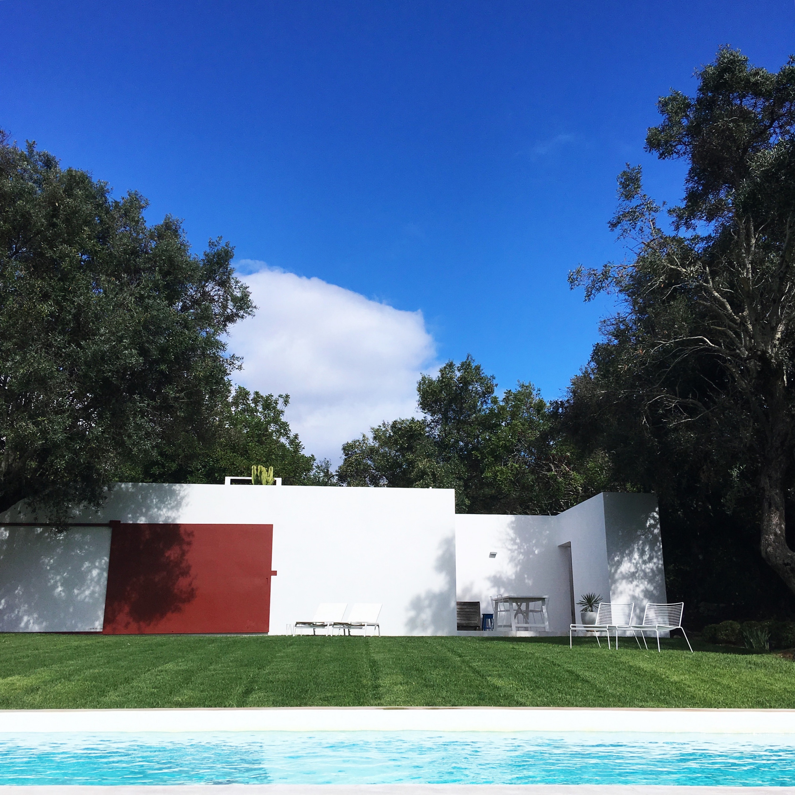 Casa Sabados is a quietly located holiday home for six people in the Algarve. Modern architecture with floor-to-ceiling windows, numerous terraces, and a stylish 15-meter pool make this a designer dream house.
