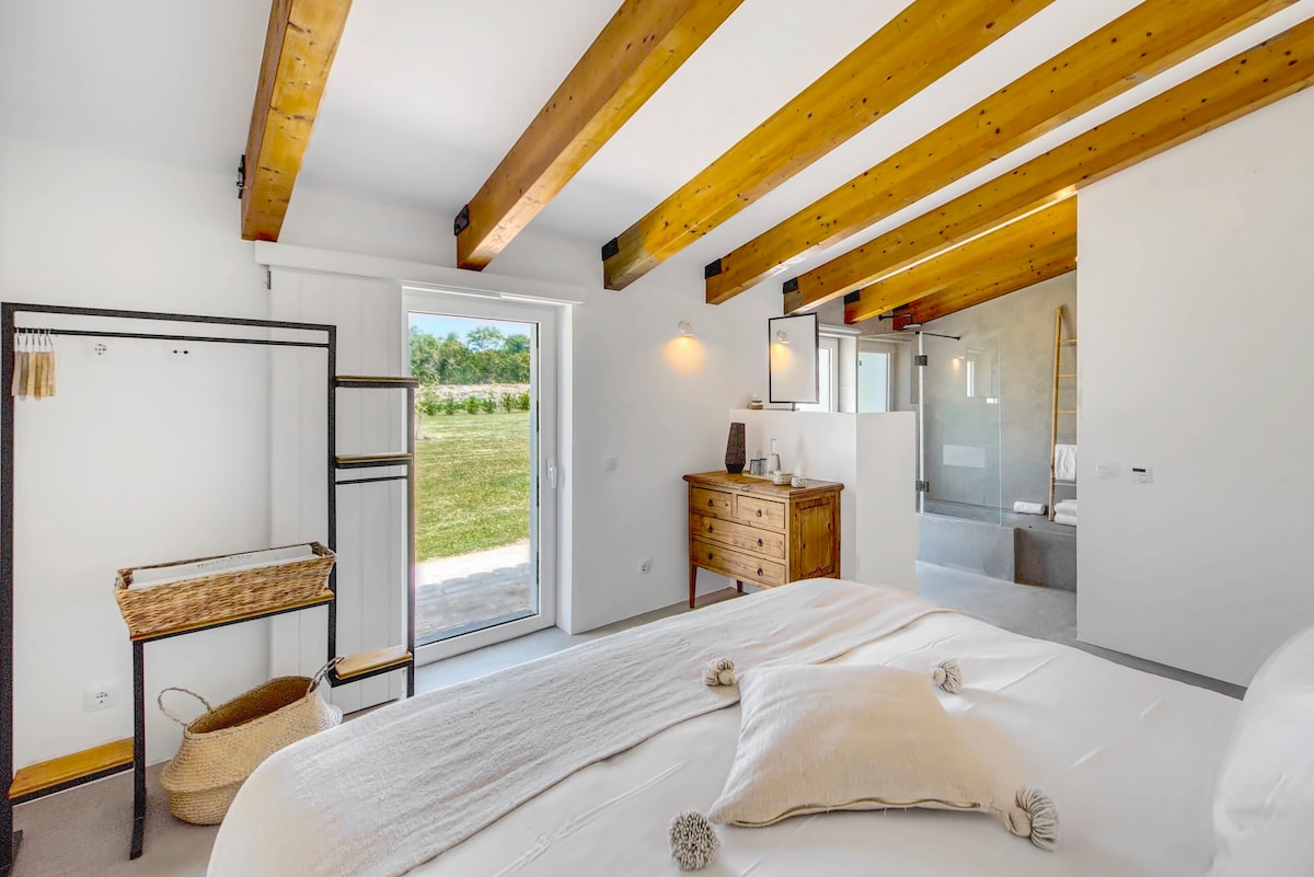 Outside, there is a large pool made of natural stones and sun loungers to enjoy the Portuguese sun. Afterwards, enjoy a yummy barbecue al fresco on the terrace while enjoying the tranquil surroundings.