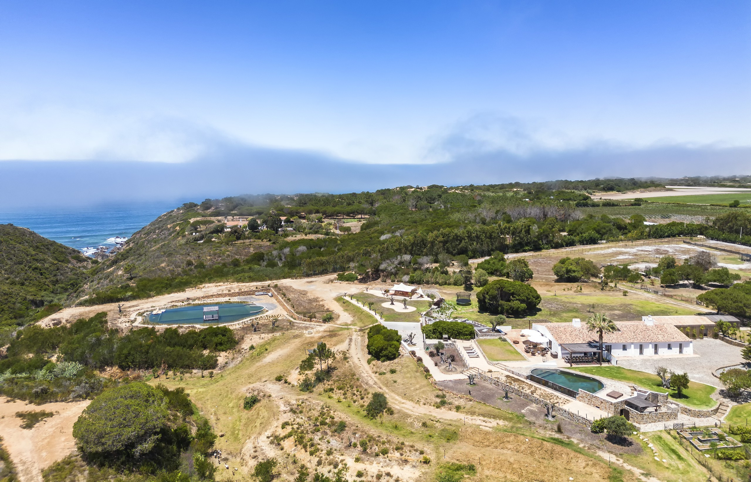 The Ocean Farm is located in the "Sudoeste Alentejano e Costa Vicentina" Natural Park, where you will find the most beautiful and unspoiled beaches. This coast is well known for some of the best surfing spots in Portugal. Outside the areas of mass tourism! The nearby town of Aljezur (13km away) is located at the foot of the Monchique Mountains, in a green environment. Aljezur offers several traditional restaurants, supermarkets and a variety of shops. A trip to the busier tourist resorts in the Algarve, including Lagos (20 min), Portimão and Albufeira is easy to do with your car or by bus. Faro airport is a 60 minute drive.