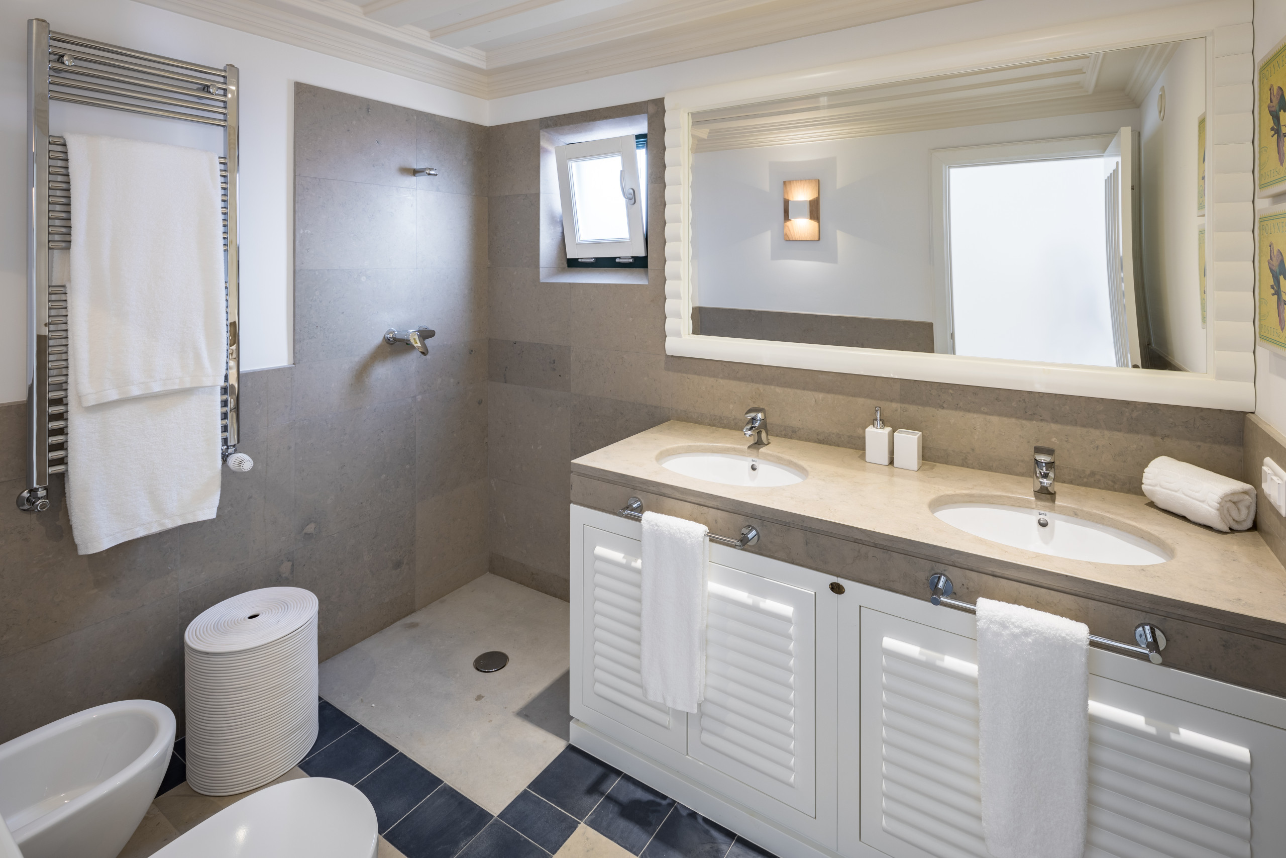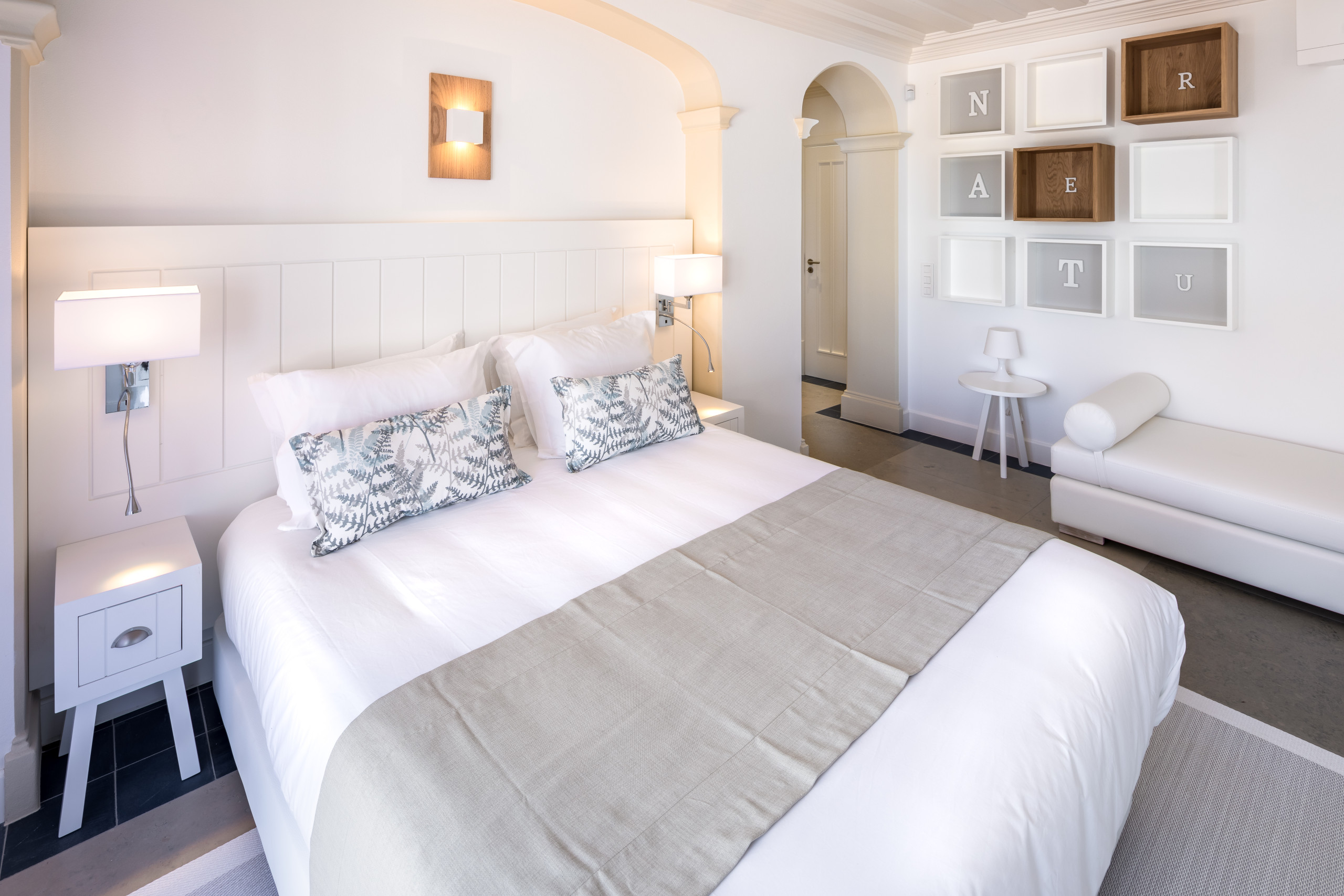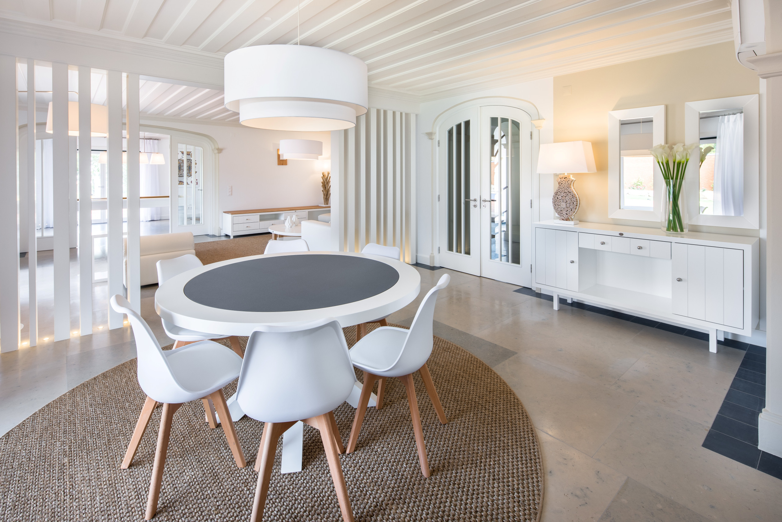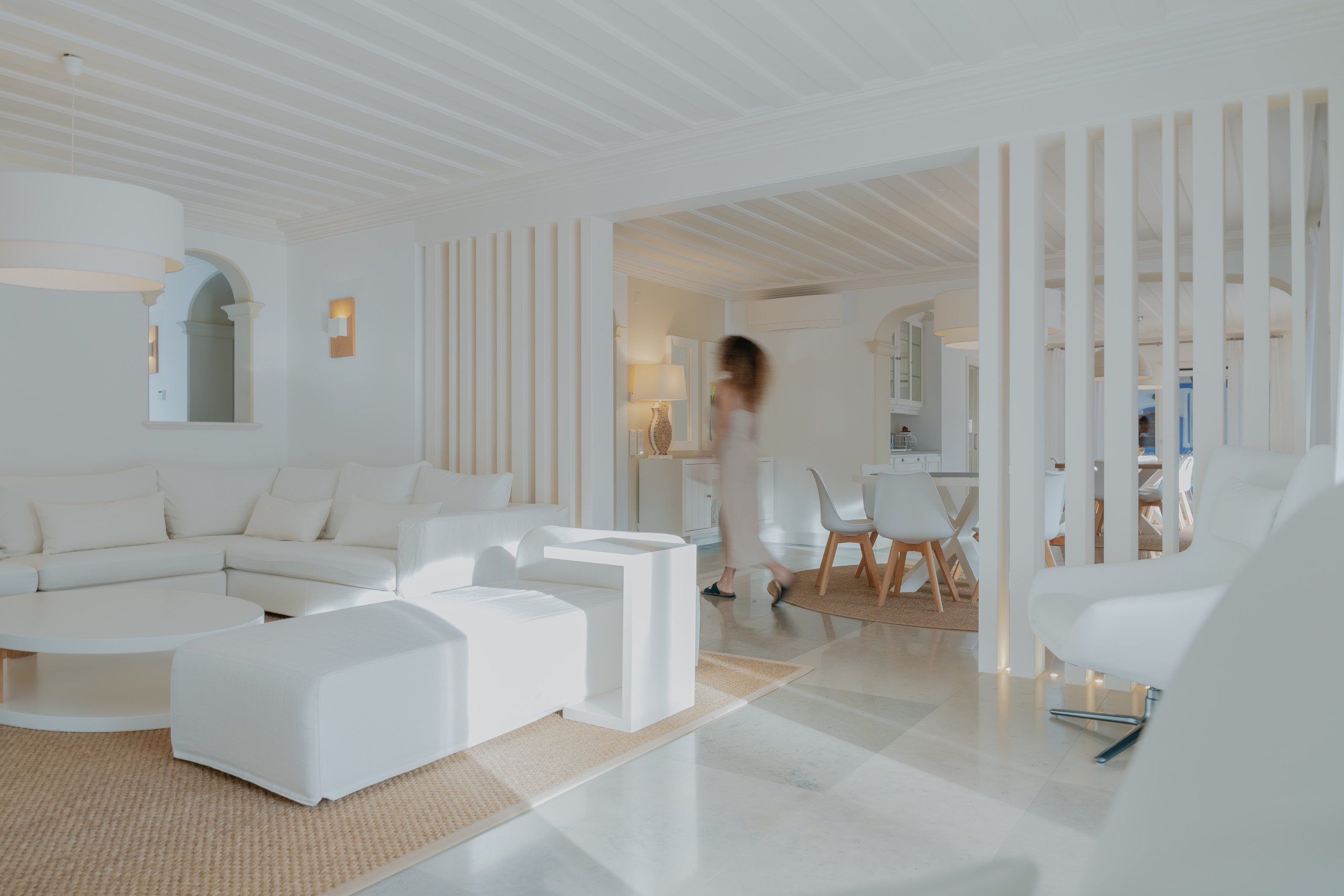 Inside, the villa reveals an atmosphere of calm refinement, where natural light, clean lines and soft contemporary textures create an inviting sense of ease.